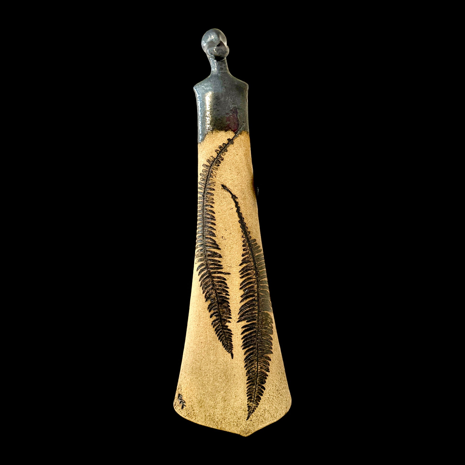 Elin Rødahl Thingnes “Møte med mennesker og naturopplevelser er inspirasjonskilder for meg som keramiker. I arbeidet med leira bruker jeg ofte direkte og sanselige avtrykk av naturen, fysiske minner og gjenstander. Det kan være strå, kornaks, blad fra trær og blomster som uttrykker naturens nerve eller oldemors gamle blondegardiner, et kjolestoff eller en strikkejakke. Når de kjevles inn i leira skaper de unike mønstre som forteller historier gjennom skulpturene jeg skaper med dem. Kombinasjoner av oksyder og glasurer bidrar til røffe og grove kontraster til det lyse og lette. Jeg bruker gjerne leiretyper som inneholder mye sand og struktur i kombinasjon med finere og lettere leiretyper for å skape dialog mellom styrke og sårbarhet. Jeg er født i Kristiansund, men er bosatt i Trondheim.”