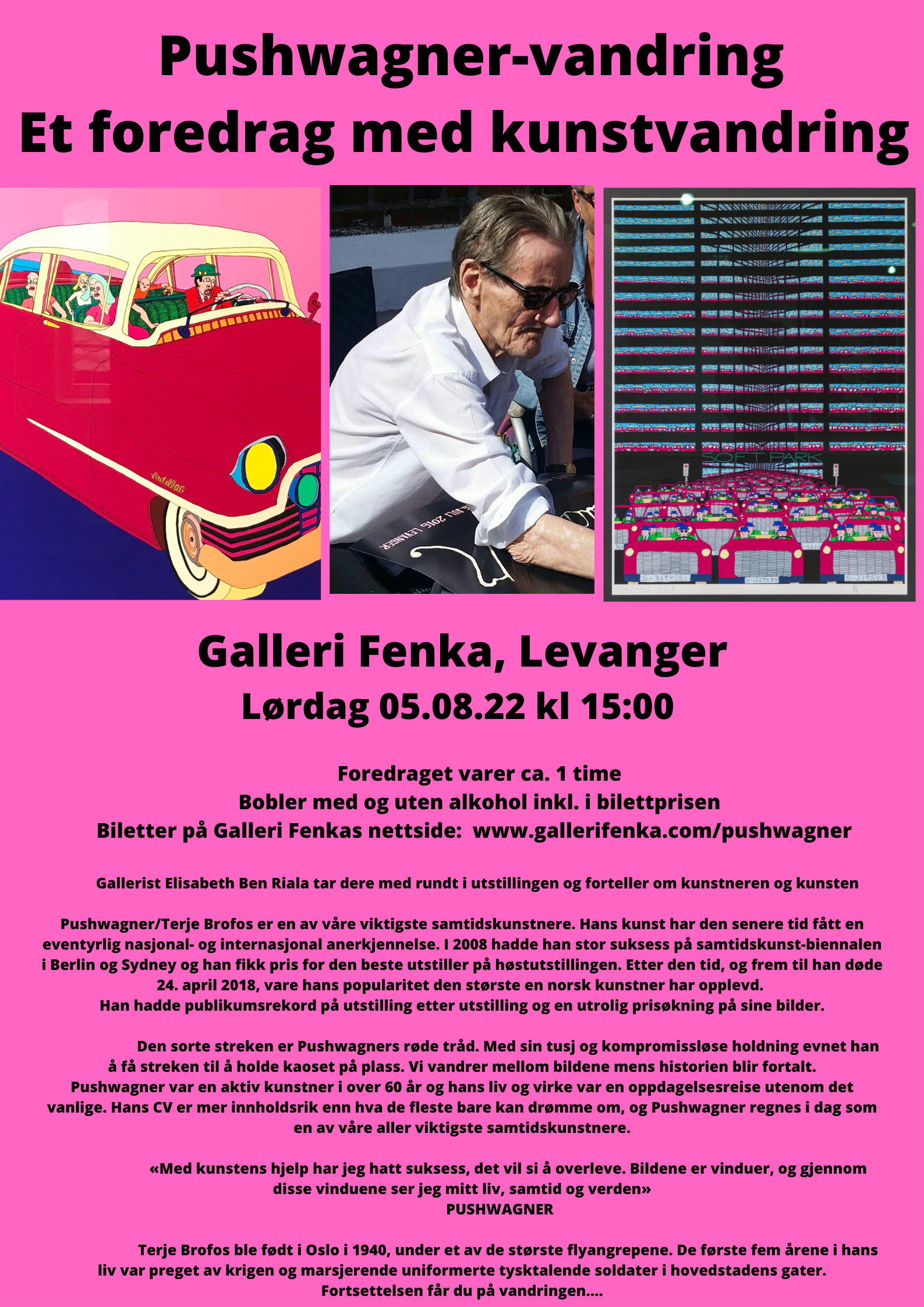 Gallerist Elisabeth Ben Riala tar dere med rundt i utstillingen og forteller om kunstneren og kunstenPushwagner/Terje Brofos er en av våre viktigste samtidskunstnere.