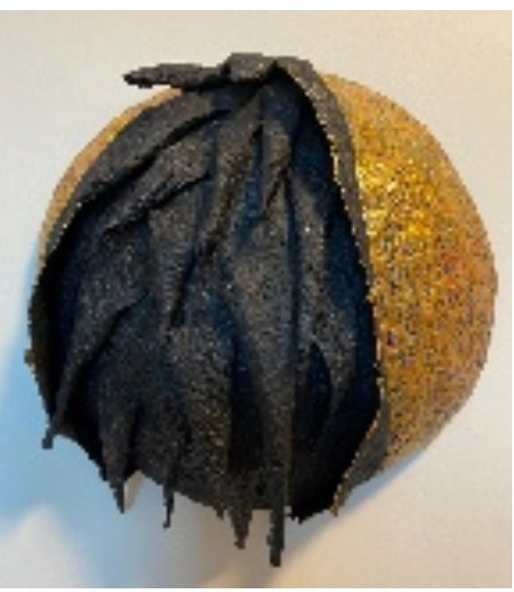 Det er laget av et handlaget bomullspapir som jeg har importert fra India. Papiret kalles Moonrock etter tørkemetoden. Først males/moses bomullsfibrene i en stor maskin, dette tømmes så i et stort kar med vann slik at fibrene flyter fritt og jevnt i vannet., Der brukes en stor ramme med netting som føres ned i karet og fanger opp et lag med fibre. Dette blir begynnelsen på et stort papirark. For å tørke arket så legges dette på en spesiell stein slik at arket får en spesiell overflate; - som en månestein (Moonroc)